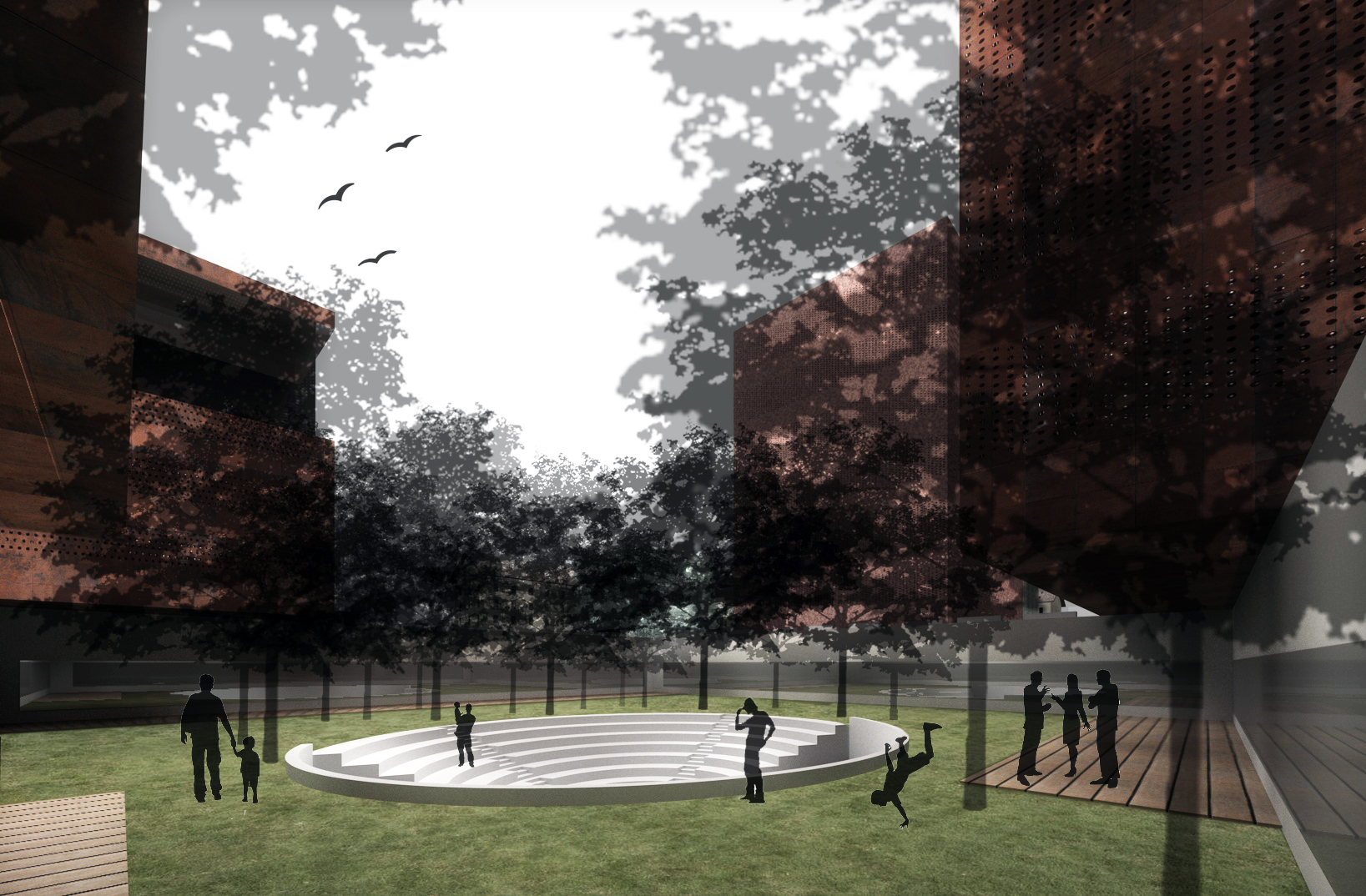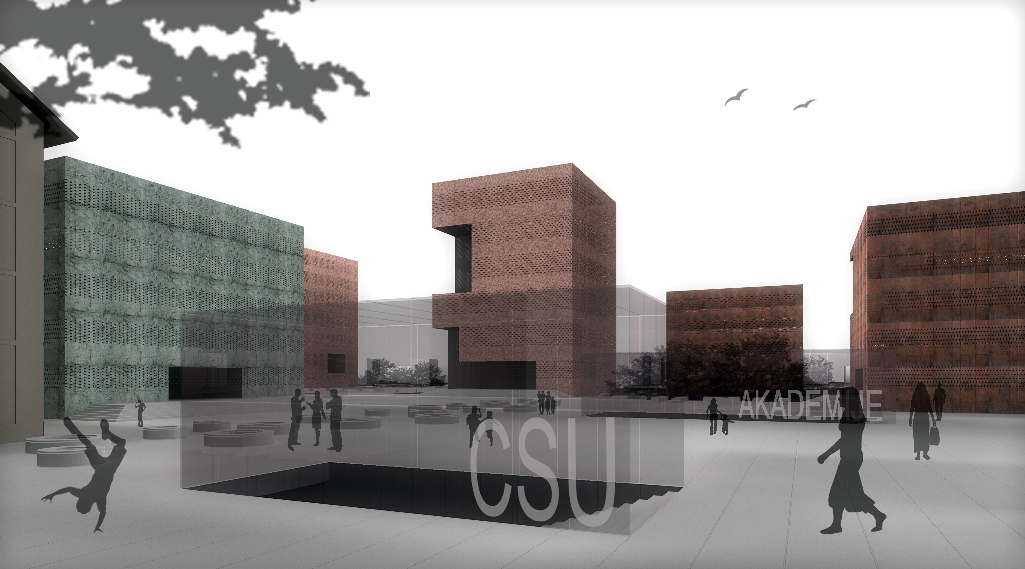 With atriums Academies get three different identities but are as well connected underground with the common spaces. On the gorund level the new situation establishes open spaces and connect the suburbs, student housing with the city center of Ljubljana.